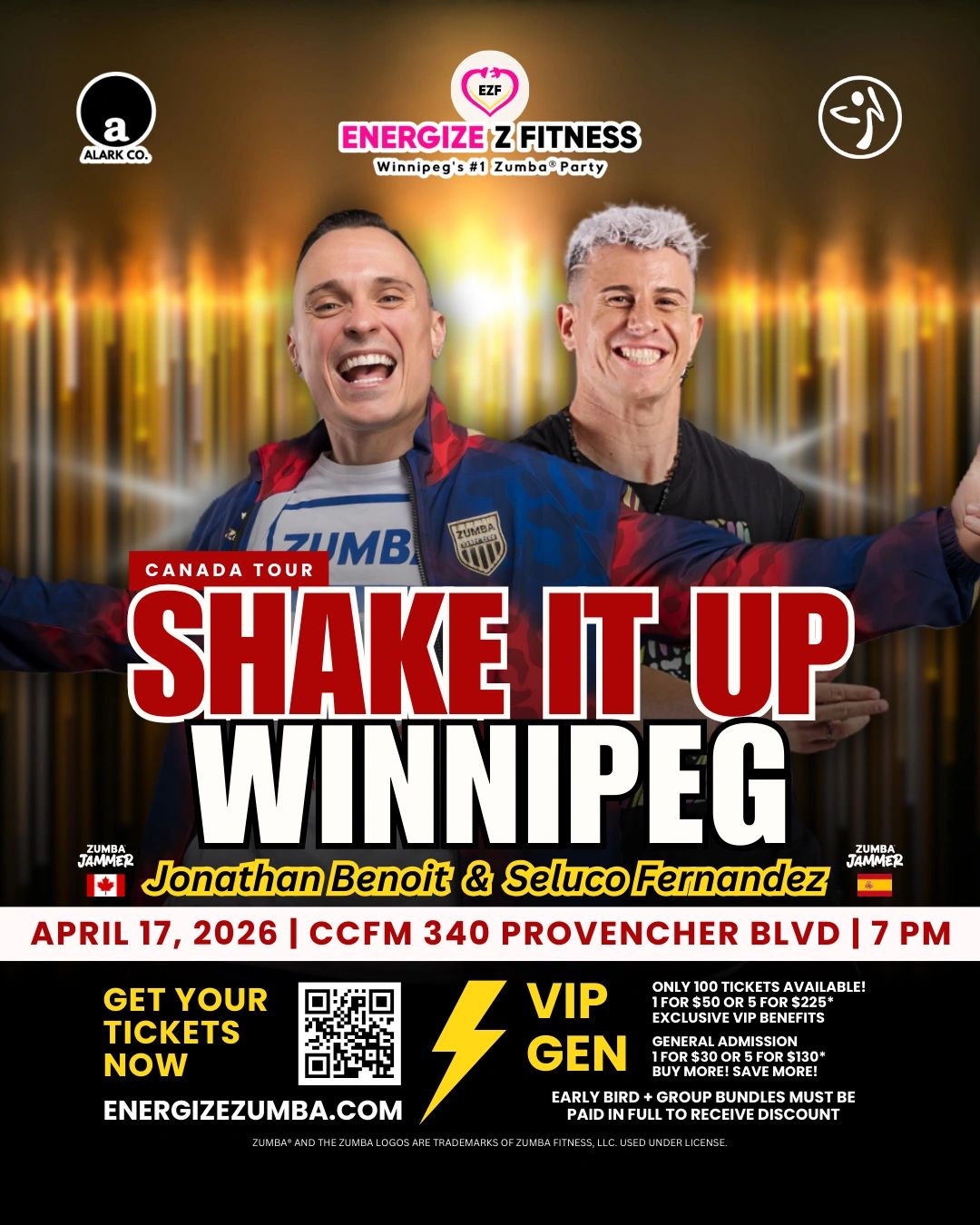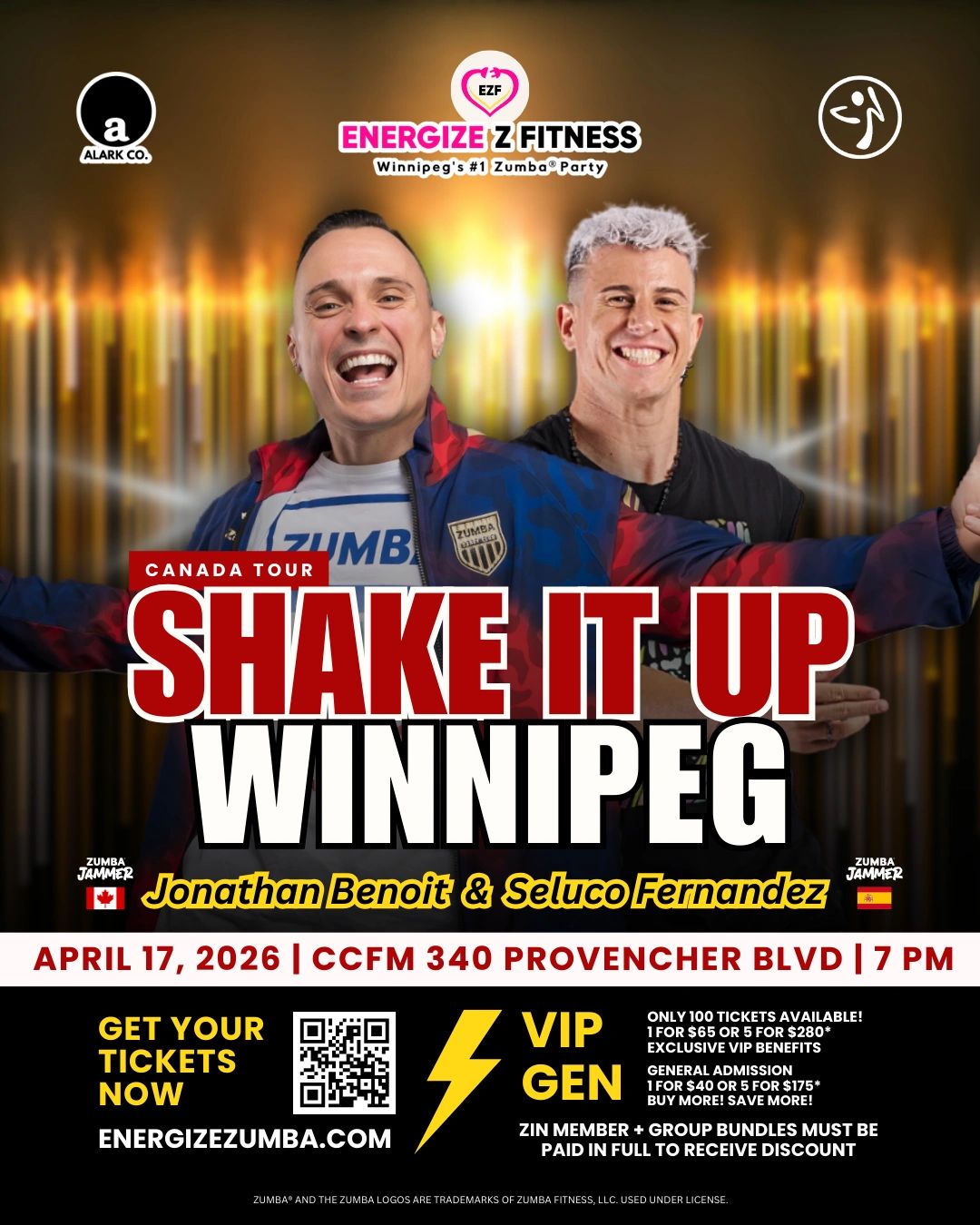 ALARK CO. Events & Marketing presents Shake It Up Winnipeg, hosted by Energize Z Fitness, featuring International Zumba Presenters, Jonathan Benoit, Zumba Jammer from Canada and International Seluco Fernandez, Zumba Jammer from Spain.